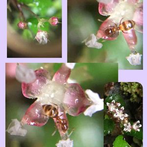 大山椒草 雄花 イラクサ科 サンショウソウ属 分布 本州〜九州 花期 4〜5月 雌雄異株または同株 花径 4mm 雨後だったので雨水が溜まってハッキリ写りませんでした。 蕾が多いようです。