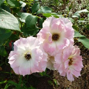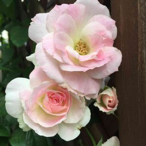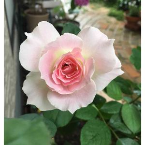 マチルダ もう一枚🌹 あまりにもかわいいので💕💕💕 マチルダは 白い花びらの先を 淡いピンク色が縁どるバラです🌹 花びらの端がゆるく波打つので、 とても愛らしい印象がします🍀 花色はかすかに青みを感じるためか、 蛍光色を感じる花です🌹 微香ですが私の好みの香りです🌹