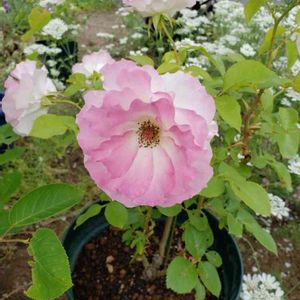 四季咲きのマチルダさん、春と違って小型の花です。春のふんわりと大きい感じから小さくてキュッとした細かなフリルが可愛らしい感じに変化しました🌿 他のレッド・レオナルド・ダ・ヴィンチやピエールも新芽が出てきました。どこまで大きくなるかな💞