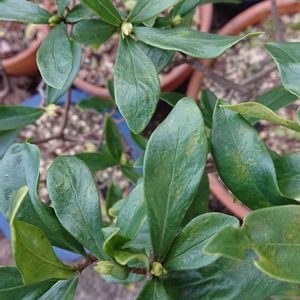 今日のお花 「ジンチョウゲ」 我が家の庭で今日でパシャリ まだまだ開花に時間かかるけど 開花した時の香りを楽しみにしています😊