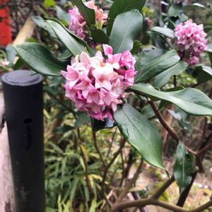 庭のジンチョウゲ 蕾の先が色づきました😊 花が咲くまでもう少し