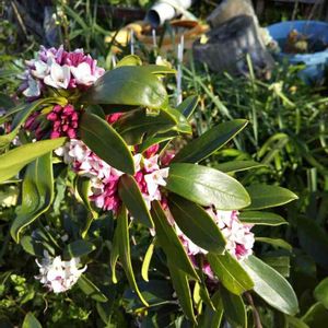 💠ジンチョウゲ(沈丁花) ジンチョウゲ科 ジンチョウゲ属 中国原産の顕花植物の種で、後に日本と韓国に広まったそうです 常緑の低木で非常に香りがよく三代香木の一つになっています 肉質で管状の花でそれぞれに4つの葉があり、光沢のある葉に成長するそうです