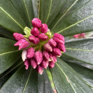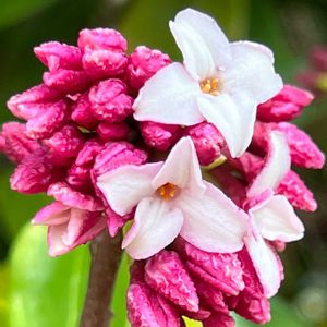 🩷ジンチョウゲ(沈丁花) お線香の香りに使う甘い香りの沈香(じんこう)と、香辛料として使うスパイシーな香りの丁子(ちょうじ)を合わせたような香りがすることから沈丁花の名がつきました。 ⚫︎ジンチョウゲ科 ジンチョウゲ属 ⚫︎原産 中国 ⚫︎花期 2月〜4月