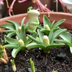 こんにちは😊 🏷️カエル仲間🐸 🏷️毎月6日はカエルの日🐸に参加します😊 1️⃣ムスカリが育ってきました🌱😊手前はクロッカスです🌱😉カエルちゃんが見守ってくれています😊💕 2️⃣菜の花と沈丁花💛🩷前日の雪〜雨になった朝に撮影☔ 3️⃣4️⃣沈丁花❄月曜、火曜と埼玉に初雪が降りました❄水曜日の朝はまだ雪が残っていました😌 ここは出勤途中の練馬区、東京でも初雪でした❄