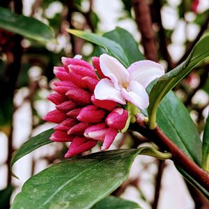 沈丁花の蕾がほころび始めました🥰 🎵春よ来い🎵 と言うかもう春ですね~ 🎼淡き光立つにわか雨 愛し面影の沈丁花🎵 あふるる涙の蕾から ひとつひとつ香り始める 🏷木曜は木の花