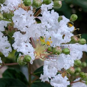 庭の花🌸 1️⃣サルスベリ(白) 実家の庭終いで我が家にお迎えしたサルスベリ✨毎年白い花を咲かせてくれます🎶 2️⃣サルスベリ(ピンク) 🐦️さんが運んでくれた種から成長したサルスベリ✨毎年ピンクの花を咲かせてくれてます🌸🎶 3️⃣センティヴィア (イングリッシュラベンダー) 鉢植え🪴だったけれど、枯れてしまったと思い、それでも株を地に植え付け様子見したら復活🌱 地植え3年目✨綺麗な花が咲き出しました🎶 4️⃣宵待草🌼 姉から貰ったお花🪴を地植えにして、こぼれ種からそこら中に発芽🌱したのを移植して増やしてコーナー作りしてます🎶 5️⃣金柑の花