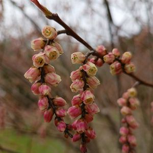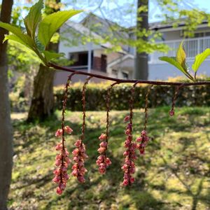 ベニバナキブシ(キブシ科キブシ属) 別名 アカバナキブシ キブシの園芸品種で、ピンクの花穂が綺麗な花木です。 1⃣ ベニバナキブシのアップ 2⃣ ベニバナキブシとキチョウ 3⃣4⃣縄のれんのようになってます。