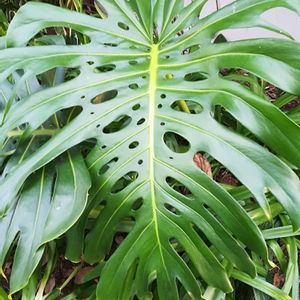 ポルトガル マディラ島 巨木?😆になったわさわさのモンステラ、葉っぱがばかでかい❗これは気根が壁にへばり付きかかっている。アイビーのよう😅
