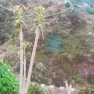 ポルトガル マディラ島 パパイアの高木 ここは果物の宝庫‼️ パパイア、マンゴー、バナナ、パッションフルーツなどのトロピカルフルーツは温暖なのでわかるけど、ビワ、ミカン、ブドウ、リンゴ!まで育てられている❗