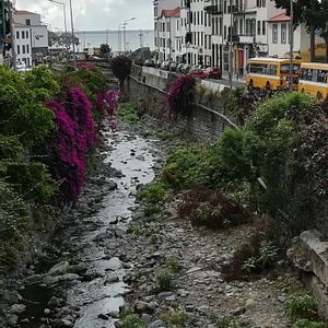 ポルトガル マディラ島 川沿いにブーゲンビリアが茂る。