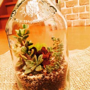 酒瓶でテラリウムです! 小さい穴から入れるの大変で傷つけちゃったかも泣