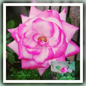 今朝薔薇🌹🌹🌹 カインダーブルーさん。 この暑さのせいで、かなりダメージを受けた明日にでも切ってあげないと。 この間新芽出た枝にこんなに咲いてくれたのに少し残念。一部は、揷し木してみるかな!枝に勢い有る時にした方よいかな? 下の箱は、ベランダ園芸部の機材や肥料とか入れて有る作業Box。