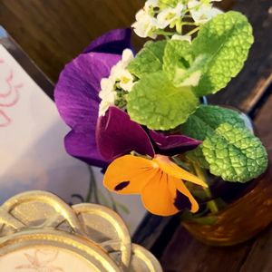 ランチで利用したカフェのテーブルにあったミニグラスの花飾り。 お店の入口に並べてあったプランターのお花だと思う。 さり気ないおもてなしがステキ✨