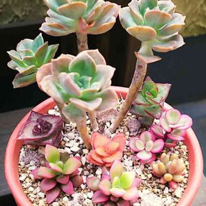 ミラグレンが寂しそうだったので紅稚児さんと葉挿しの紅日傘が育ってきたので一緒に同居させてあげました♡ (๑´∀`๑)ア'`'`'`