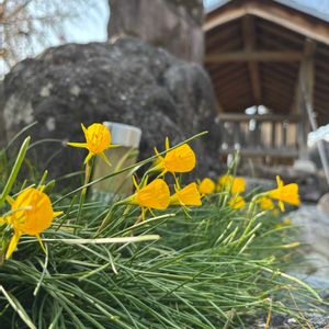 ご近所のナルキッスス・ブロボコディウム 別名のペチコートスイセンで良いですね😉 ヒガンバナ科、水仙の原種系だそうです 花言葉は自己愛💖 奥に見えるプリムラジュリアンも元気いっぱい咲いていました 🏷日曜ビタミンカラー♪ 🏷幸せの黄色いお花 に参加させて頂きます🎶