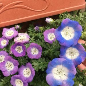 ネモフィラ❣️ ラベンダーっぽい色の子と、不思議なツートンカラーの子😆 青いネモフィラのカゴの中でみつけました‼️ 個体差なのか面白い😊