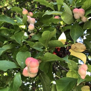 おはようございます☺ 奇妙な形の袋果 見てきました。 ↑ハクモクレン モクレンは、袋果ひとつ。或いはふたつだそう。 コブとり爺さんのようですね~ ↓コブシ 種見えてきてますね~ ふたつとも春のお花とのイメージ違います😉 SNOOPYは、今年買ったユ○ク○Tシャツ👚どなたかお揃いかも♪ 2枚目 今日のお花 ナナカマド♡ 近くで咲いてました。咲く時期今?…