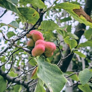 🌳街路樹の実いろいろ🌳 先週の雨上がりに📱パシャリ ①コブシの実 ②ヒメリンゴ ③ユリノキ ④ナンキンハゼ ⑤トベラの実
