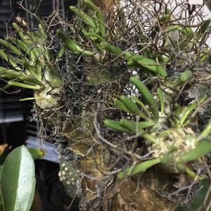 万物想。先日福岡県久留米市であった花伝のイベントon the plantsのプランツワークさんブースにてゲットしてきました。トリステ欲しかったんですが35番入場でもう何個か売れてて、、残ってたのは四万とか高額すぎて買えず。。でもこの万物想が目に入り、迫力もあり一目惚れ。奥さんの顔色うかがいながら購入😅 初代万物想は、冬型というのを過信しすぎでからしてしまい。。どなたか万物想の育て方やらおしえてほしいです。。水やりのタイミングやら日光時間やら