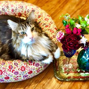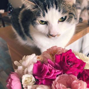 今朝摘んだバラとうちのこルールー♪ チャームポイントはワルそうなガン飛ばしです🤣