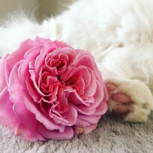 ピンクの競演🌹 マリーヘンリエッテと肉球♪