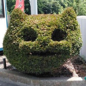クロネコヤマトに宅急便を出しに来たら、 宅急便の敷地内のツゲが、クロネコヤマトの黒猫に刈り込まれていました。 可愛いですよね。😄💞💐🍀🌈