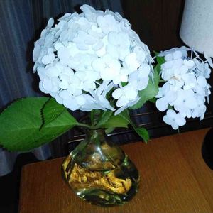 お泊まりしたお部屋の机の上に紫陽花が飾られていました。 昨日、今日、あいにくの雨ですが、こんな紫陽花に出迎えられたら、憂鬱感☔も、吹っ飛びます。😃💖