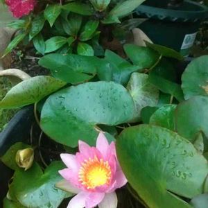 放置状態の睡蓮でしたが、 最近 石の水がめ(?)に 植えて 花が咲きました💕(๑>◡<๑) もう一つ 睡蓮鉢に 植えたけど そっちは、咲いてくれません😢