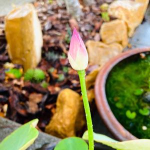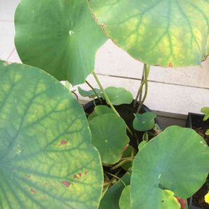 手乗り蓮の素碗という品種です。 大きめの鉢に植え替えをしてから徐々に葉のサイズが大きくなり、葉が立って来ました🌱 白いお花が咲くそうですがまだ一度もお花を見ていません🤔 一時、めだかを入れた鉢に入れていて手入れが行き届かなかったのかもしれません。 どうやら今年もつぼみは上がらなそうです🌱