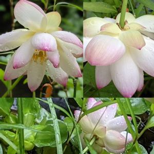 手乗りハス「小舞姫」も植え替え中です👍 雨だっちゅうのに楽しくてハッスるしてます(笑😆