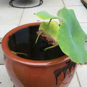 今年の夏に、ホームセンターで安く売ってたので手乗り蓮を買いました✨ 蓮を育ててみたかったので、願いが叶いました 蓮の植木鉢は、昔梅干しを漬けてた壺を再利用しました いつ、花が咲くのでしょうか? 買って早めに植え替えし、1週間くらい経ったら緩効性肥料を何粒かやりました 水も多めに入れました 土は、野菜と花の土を水で混ぜました(手乗り蓮を売ってる会社のホームページを見て)