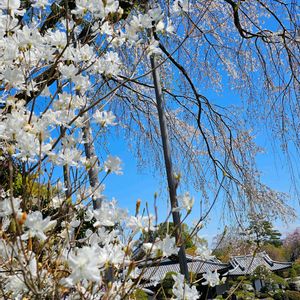 今日友達と近所の桜を色々散策しました これはお寺に咲いてる白いミツバツツジとシダレザクラ 🏷️白い水曜日♡ 🏷️白い貴婦人✨