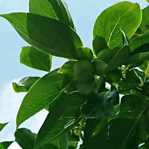 小さな小さな青い実。秋には綺麗な橙色になるんだなぁ。初めて見た😃柿の赤ちゃん👶