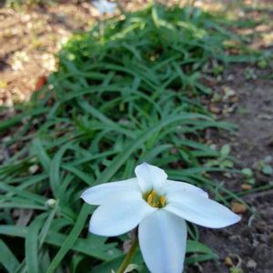 玄関から、 右手に進んで… 庭と畑の間の小径の 地植えの花が癒してくれます🎵 先ず右側のハナニラ⤴️😚 お向かいの奥さんにいただいたものです😅
