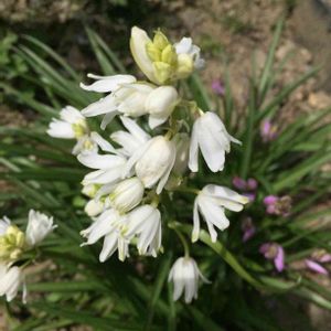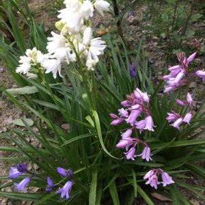 秋に植えた球根 シラーカンパニュラータが開花しました。 すらっと伸びた細い茎に可憐なベル状の花🔔 可愛い😍