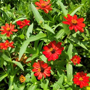 厳しい暑さが戻ってきました☀ ✾5月にお迎えしてから🌿咲き続けている 真っ赤な❁ジニア❁💕 ✾1ヶ月で大きく広がった✨メランポディウム✨ ✾寄せ植えの❆ペンタス❆沢山咲いています🩷🌿 ✾こぼれ種で出てきた🌱❀ニチニチソウ❀🔴🤍🌿 ✾沢山咲いてきた✿インパチェンス✿🩷🌿