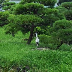 松の梺に鷺らしき鳥も発見😀 暑いもんねー💧 体力消耗しないようにお休み~🌳