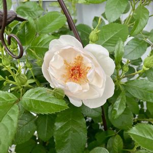 今日も暑い1日でした。 摘蕾をやめたジャクリーヌデュプレが咲いてきました。 挿し木の小さな株のアイスバーグにハッとする美しい白色で花が咲いています。親株は蕾上がってきています😁 マイスタージンガーは夏剪定していないので色褪せた花色です。