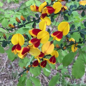 昨日行ったモリコロパークで出会った 名前を知らない花② 1つ分かった所で連投お許しください🙇♀️ エニシダに似てるけど、仲間でしょうか❓ Miyukiから教えていただき やっぱりお仲間の「ホウベニエニシダ」と分かりました✨ 皆さん回答が素早くてとても嬉しいです💕 ありがとうございます❣️