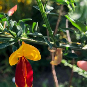 エニシダ💛❤ ポツポツ咲いてきました.。.:*♡ もともと黄色い花だったのにこぼれ種で出たのを植えたらこの花も咲きました。 黄色一色の花もあるはずなのに今年は咲いていないです。どこにいったのか…? この黄と赤の花ばかり(*¨*)? 足元に黄色のフリージア、ジュリアンあって、もうすぐ庭が黄色の花でいっぱいになります•*¨*•.¸¸♬︎