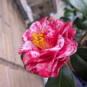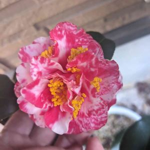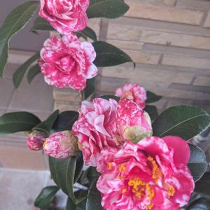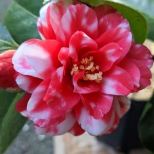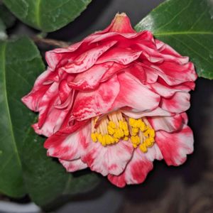 先週金曜日に行った植物園で『鹿児島』と言う品種の美しい💗ツバキ💗が咲いていました😍💖 (紅地に白斑入り、八重、松笠型)