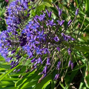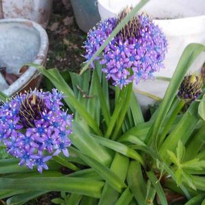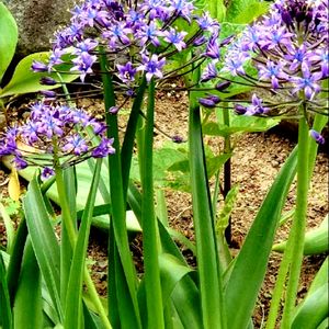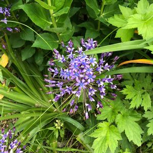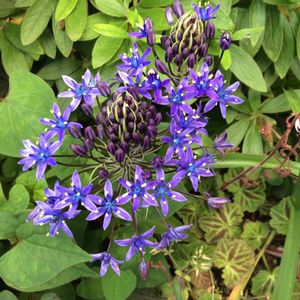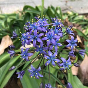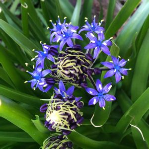 🪴草花たち その144 シラー・ぺルビアナ 「今日のお花」です。 2021.4.7に撮影したもの。 また、暖かい春本番の頃に花が咲くのをたのしみに。 星を散りばめたようなこのお花を眺めていると、 「銀河鉄道の夜」のジョバンニが行った丘には きっとこんな花が咲いていたのではないかと思うのです。 (๑˘⌣˘๑) * 。.:**:¨°*・..。.:*☆ 🍬にゃんママさん主催 🏷ちっちゃいものクラブ 🍬mako(#^.^#)さん主催 🏷星屑ファンタジー に参加します♡ ✨ 良い一日を♡ ❄️ *・゜゚・*:.。..。.:*・'❄️'✨・*:.。. .。.:*・゜゚・*❄️✨ ⌘ メモ ⌘ 🔸科名・属名 キジカクシ科(クサスギカズラ科) ツルボ属(シラー属) ※分類体系によりユリ科、ヒアシンス科 🔸学名 Scilla peruviana 🔸英名 Portuguese squill Hyacinth of Peru Cuban lily Peruvian scilla 🔸別名 オオツルボ(大蔓穂) 🔸由来 ❇︎ 「Scilla 」 ギリシャ語の「skyllo(有害)」が語源で、 地下茎部分が有毒であることに因む。 ❇︎「peruviana」 「ペルーの」という意味17世紀スペイン南部で 発見された本種がイギリスに持ち帰られた際に 乗っていた船の船名が「The Peru」だったことに 因む。 🔸原産地 ヨーロッパ 北アフリカ 🔸分布 地中海沿岸部 🔸花期 4月〜6月頃 🔸花色 青紫 白 🔸特徴 球根植物。落葉性の多年草。草丈20㎝~50㎝。 分布域はイベリア半島、イタリア、北西アフリカ へ広がっており、道ばたや草原、牧草地や森林の 開けた場所などに自生する。日本へは明治時代の 中期に観賞用として渡来。 葉は幅のある線形の根生葉で、長さ20~30㎝程度。 花期になると、葉の中心部から花茎を真っ直ぐに 伸ばして花序を出し、星形の花を20~100輪ほど をまとまって咲かせる。 花径2㎝程度で、ゆるく反り返った6枚の花弁を 持ち、真っ直ぐに伸びた6本の雄しべの葯が目立つ。 花序は傘状(円錐花序)で、花は花序の下から上 (外側から内側)へと咲き進む。 基本種の花色は青紫だが、白花品種も近年流通 するようになった。 耐寒性があり丈夫な性質で、数年は植えっぱなし でもよく花を咲かせ、よく増える。 梅雨ごろになると地上部を枯らせて休眠し、秋に 再び芽吹く。 花の後にできる実はさく果(熟すると下部が裂け、 種子が散布される果実)である。 鱗茎は有毒ですが薬用にされる。