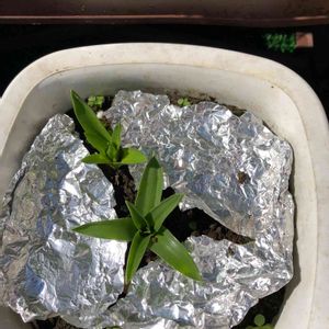 虫よけにアルミ箔をしきつめていたら、シラーペルビアナが新しく芽を出してました🤗増えて嬉しいです😆