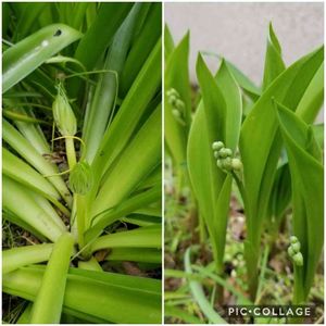 庭を占領していた、ニラバナをむしり取ったら、スズランの花が出てきました‼️ 今年はニラバナの勢力に負けてしまったかと思いました❗ シラーペルビアナの蕾も発見❗ あなたも出てきたのね✨ 日が当たるように広げてあげました😄✌