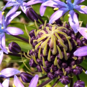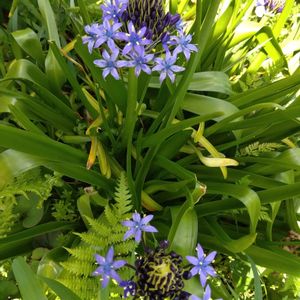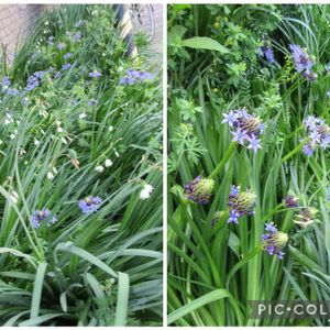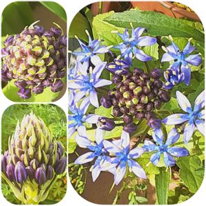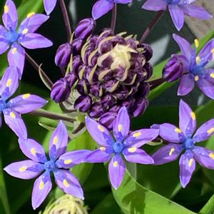 こんにちは😃 先日、お迎えしたシラーペルビアナ❣️ 一気にお星様が増えて、もう少しで真ん中まで咲きます🌟 2年目エレモフィラニベアさんも枝先の花が重くて、暴れ放題🤭🤭💦💦 花後の切り戻しでいいのかしら???