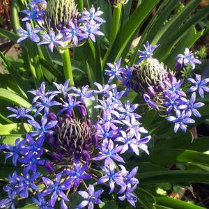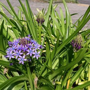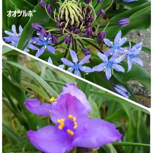 1/27㈭① 今日のお花 シラー シラーペルビアナ Scilla peruviana pなので ペルビアナ です。 ベルビアナ ではありません😃 キジカクシ(ユリ)科シラー(ツルボ)属 紫色の花びらに小さな花のような6本の青いオシベが美しいです。 青い☆に見えることから 星のソナタ というキャッチコピーで販売されていたこともあるそうです。 別名 オオツルボ 2020年5月にマンションに咲きましたが、2021年にはなく、町田えびね園で小さめの花を見ました。 1番濃い色合いの写真は2020年5月19日の写真です。
