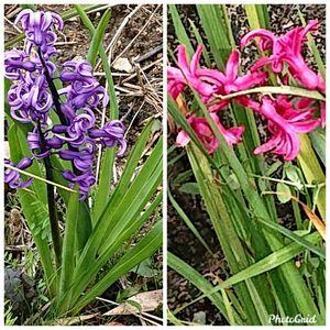 ヒヤシンスちゃん ピンクは、20年物で、崖下で 草取りしたら、でてきました。 紫は、荒れたかつての花壇で、咲いてました。