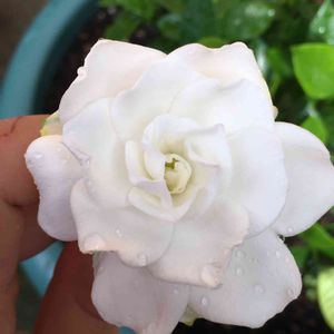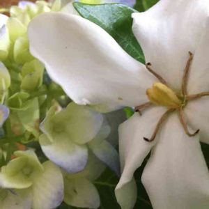 クチナシの花びら 雨に当たらないようにしないとすぐ茶色くなってしまう。この、白いポッたりした花びらが好きです。この香りもたまらない💗💕😍