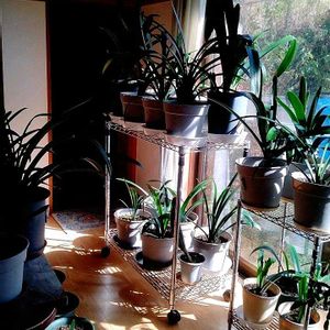 最低気温が0℃近くになってきたので、例年通りの冬越体制に入ります。 外に出してあったクンシランとサボテン類を廊下の縁側を区切って作った温室スペースに移動させました。 歩くのに少し不便ですが、来年の春が来るまでガマン、ガマン。 2018年に1鉢でスタートしたクンシランですが、度重なる株分けで現在26鉢になっています。 そろそろお嫁入り先を探さないと次の株分けはもう置き場所が無く出来ません。(笑) 🐝💐🌼🏵️🌸🌱🌿🎶🐝💐🌼🏵️🌸🌱🌿🎶