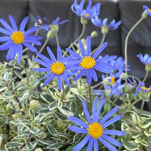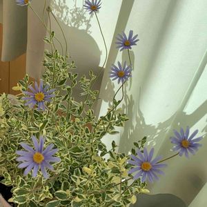 斑入りブルーデージー 昨年の子は⭐️になってしまいましたが また新たにお迎え💕斑な葉っぱも花色も大好き🥰多年草とあるので ずっといてほしいんだけど夏越し冬越し難しいのかなあ。 🏷斑入りフェチ